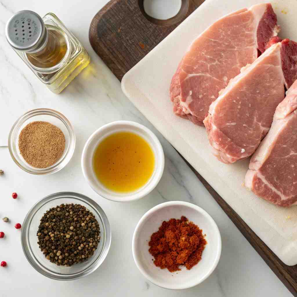 - Prep the Pork: Pat the pork chops dry with paper towels. This helps them sear properly. Season with salt, pepper, and garlic powder.